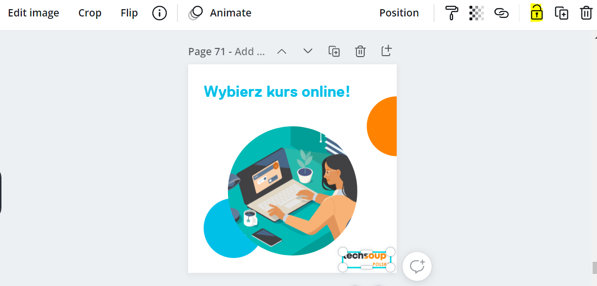 Chcecie, aby logo było zawsze w tym samym miejscu na grafice? Użyjcie funkcji blokowania elementów. Wtedy nie będziemy mogli zmieniać położenia tego elementu przy edycji.