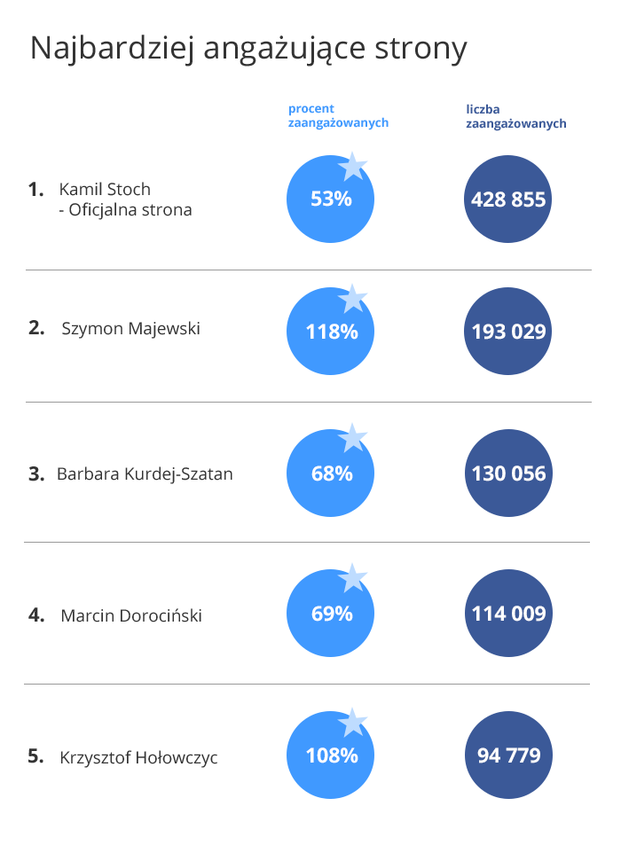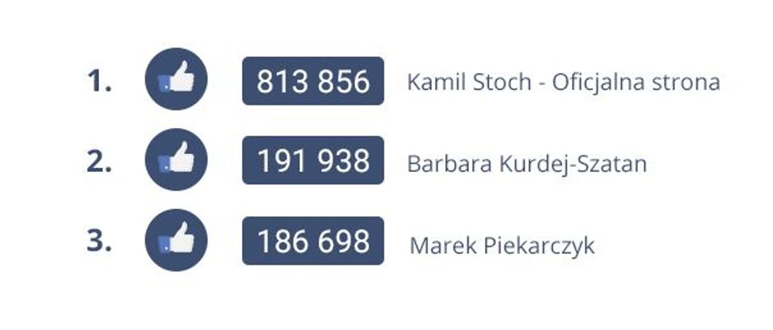 Największymi stronami na Facebooku, wśród nominowanych w tym roku gwiazd, mogą się pochwalić Kamil Stoch, Barbara Kurdej-Szatan oraz Marek Piekarczyk. Kogo znajdziemy na kolejnych miejscach i dlaczego zasłużyli na nominację w plebiscycie?