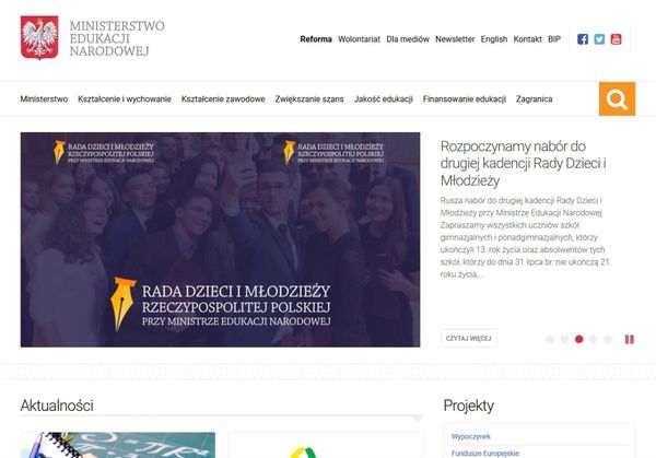 Ciekawym przykładem witryny stworzonej z wykorzystaniem Wordpress jest oficjalny serwis Ministerstwa Edukacji Narodowej.