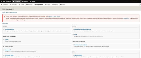 Aktualnie wiele funkcji w Drupal można wywoływać z poziomu dedykowanego panelu sterowania. Niestety, nie należy on do najbardziej przejrzystych.