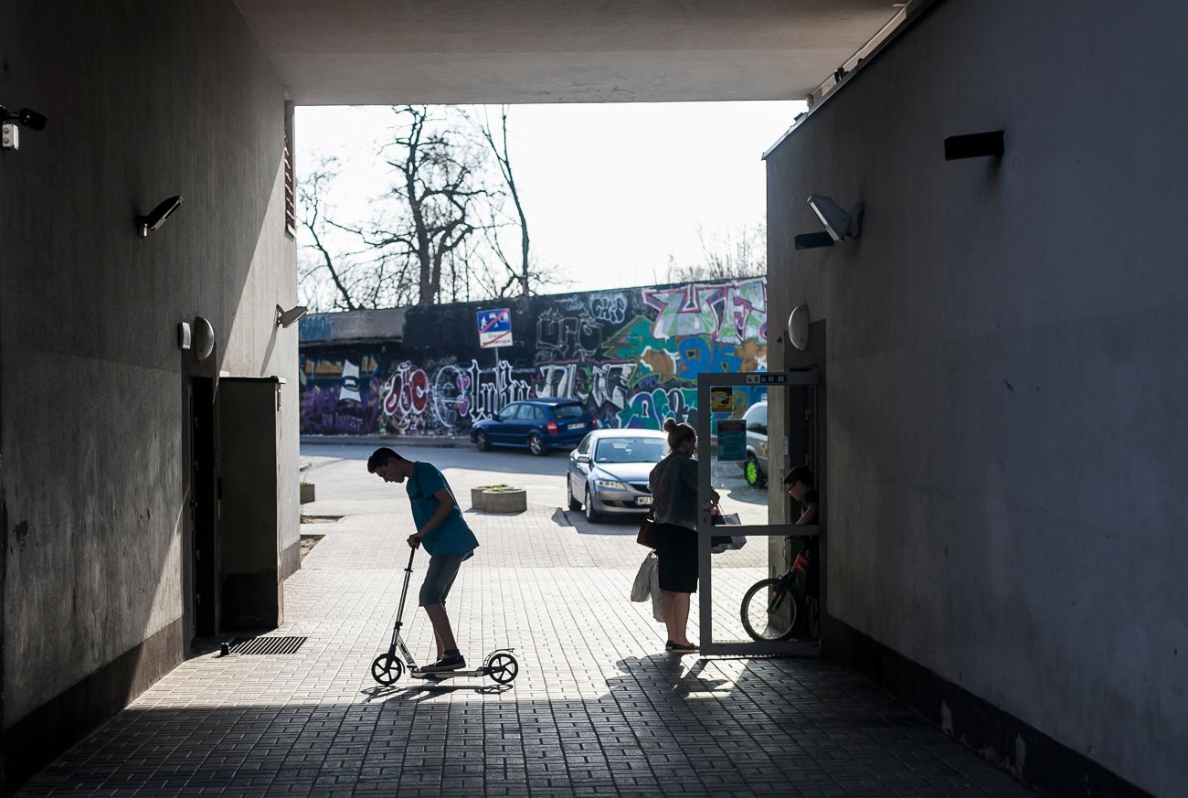 Ulica Piaskowa na bliskiej Woli. Trzy bloki komunalne. Do pierwszego, Piaskowa 7, mieszkańcy wprowadzili się jeszcze w 2006 roku, do pozostałych dwóch – Piaskowa 9 i 11 – w styczniu 2010. Stanęły w trójkącie ograniczonym torami kolejowymi, Cmentarzem Powązkowskim i Aleją Jana Pawła II, tuż koło Arkadii. Wtedy była tam kompletna pustynia. W okolicy żadnego sklepu spożywczego, boiska, o przedszkolu czy szkole nawet nie wspominając. Maleńki plac zabaw na podwórku jednego z bloków to dwie huśtawki, piaskownica i zjeżdżalnia. Przesiadują tu zarówno małe dzieci, jak i nastolatkowie. Lokalne portale alarmują: jeśli zaraz coś się nie zmieni, to nowe bloki wkrótce zamienią się w slumsy.
