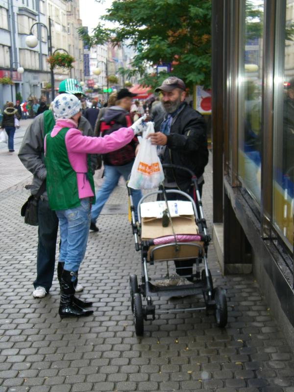 W sobotnie przedpołudnie w centrum miasta młodzi ludzie z Polski, Niemiec i Ukrainy częstowali wszystkich przechodniów chlebem ze smalcem i ogórkiem. Młodzież pojawiła się dzięki międzynarodowej współpracy Towarzystwa Ochrony Praw i Godności "Wyspa". W ten sposób organizatorzy chcieli zwrócić uwagę na problemy związane z niedożywieniem znacznej części naszego społeczeństwa. Każdy mógł też otrzymać torbę wypełnioną pieczywem, aby móc podzielić się nim z innymi, bardziej potrzebującymi. - Obowiązek i potrzeba solidaryzmu społecznego w walce z tym wstydliwym problemem jest dla wszystkich wyzwaniem na miarę czasu i wielkości problemu - mówi prezes Śląskiego Banku Żywności, Jan Szczęśniewski, organizator imprezy. Mimo nie najlepszej pogody happening cieszył się dużym zainteresowaniem chorzowian. Niektórzy byli nieco skrępowani i nieufni wobec rozdających chleb. - Pierwszy raz w życiu dostaję coś za darmo na ulicy - mówi 72-letnia pani Jadwiga - ale akcja mi się podoba, a otrzymanym pieczywem podzielę się z sąsiadami.
