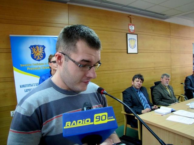 Mateusz Josiek wystąpił podczas wtorkowej sesji Rady Powiatu Cieszyńskiego (27.11.2013). Podopieczny Świetlicy Terapeutycznej OREW mówił o swoich planach na przyszłość – a ta wydaje się rysować w ciepłych barwach. „Mam 22 lata, i mam takie same prawa jak każdy człowiek. Ale co z tego, że według prawa jesteśmy równi, skoro w codziennym życiu napotykam wiele trudności. Nie przyszedłem tu mówić, jak mi jest źle. Wręcz przeciwnie, jestem szczęśliwym człowiekiem”. – mówił Mateusz do Radnych Powiatu i Członków Zarządu. „Wraz z innymi podopiecznymi Świetlicy Terapeutycznej, i dzięki pomocy Stowarzyszenia postanowiliśmy zadbać o siebie, o swoją przyszłość. Utworzyliśmy spółdzielnię socjalną – nasze przyszłe miejsca pracy. Chcemy zająć się utrzymaniem terenów zielonych, ogrodów, odśnieżaniem, i opieką nad grobami. Co z tego, że mamy trudniej? Potrafimy tak wiele. Znacie już nas z pieczenia placków ziemniaczanych, czy robienia pysznych gofrów na Rynku. Teraz czas na to, żebyście poznali nas z innej strony, jako pracowników. Zrobiliśmy pierwszy krok. Teraz czas na kolejny. Potrafimy pracować, i Państwo wkrótce będą mogli się o tym przekonać. Wierzę, że nam się uda”. Po tych słowach Mateusz otrzymał gromkie brawa od Radnych Powiatu, Członków Zarządu i urzędników. Jak przyznaje, to wystąpienie było dla niego stresujące, bowiem pierwszy raz znalazł się w takiej sytuacji – wystąpienia przed publicznością. „Jeśli będzie taka potrzeba wypowiem się publicznie raz jeszcze – to nie takie straszne jak mogłoby się wydawać” – powiedział Mateusz, gdy stres i emocje już opadły. Mateusz Josiek jest jednym z założycieli powstającej Spółdzielni Socjalnej „Ekozofia Niepełnosprawnych”, w skład której wchodzi jeszcze czwórka podopiecznych Świetlicy.