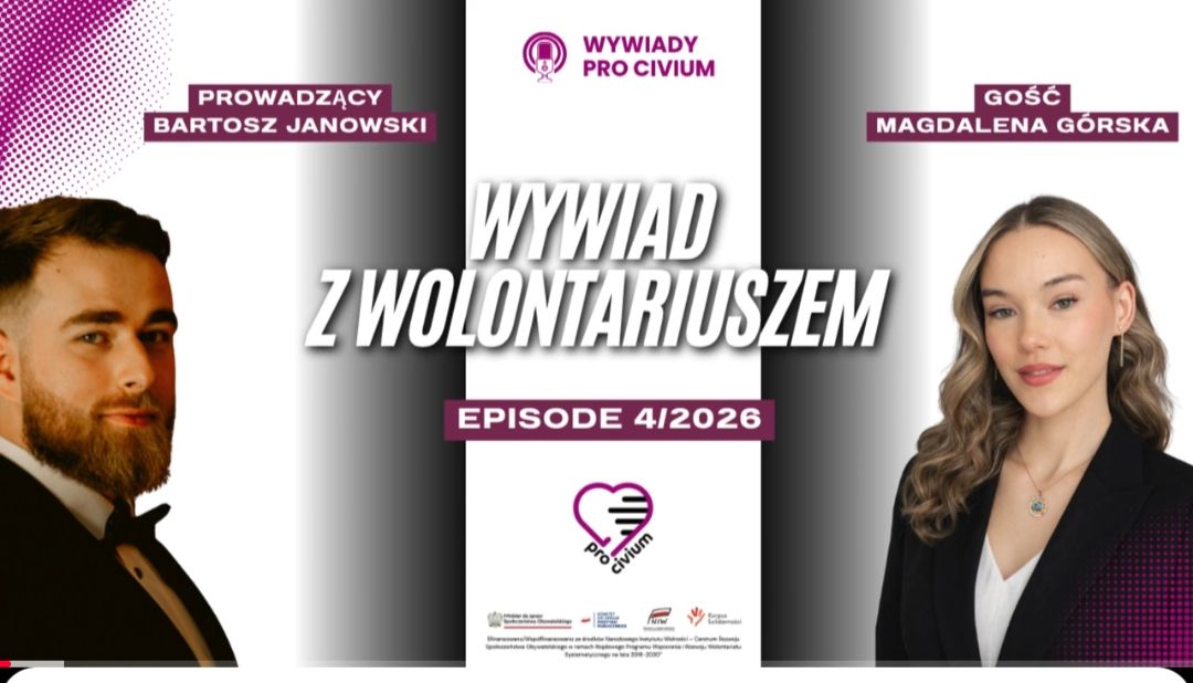 Rozmowa w formie podcastu z Magdaleną Górską, działaczką Stowarzyszenia Inicjatywa Obywatelska Pro Civium w Poznaniu o jej drodze w organizacji od studentki psychologii na praktykach zawodowych po - dziś - zarządzanie 60 osobami.