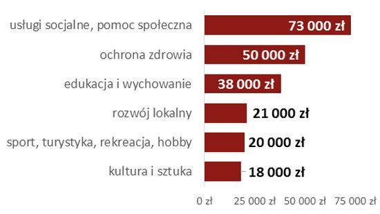 Organizacje zajmujące się ochroną zdrowia realizują swoją misję głównie poprzez promocję zdrowia, profilaktykę oraz edukację zdrowotną – w ten sposób działa 73% z nich. Mniej powszechne są rehabilitacja i terapia, a więc prowadzenie lub wsparcie zakładów opiekuńczych lub hospicjów – taką działalność prowadzi 60% organizacji. Interwencjami kryzysowymi lub wsparciem psychologicznym zajmuje się 30% organizacji zdrowotnych. Prawie tyle samo z nich (29%) zajmuje się dystrybucją leków czy sprzętu medycznego lub wsparciem finansowym ich zakupu. Opieka szpitalna lub ambulatoryjna i badania medyczne to dziedzina, w której działa 14% organizacji tej branży.