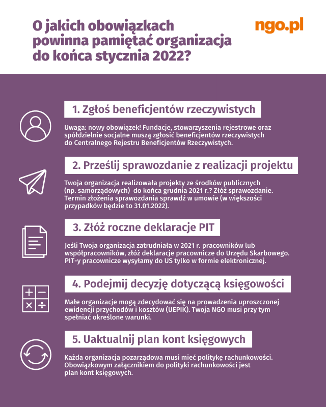 Styczeń to dla NGO-sów trudny miesiąc. Trzeba w nim zrealizować ważne obowiązki i podjąć kluczowe decyzje.