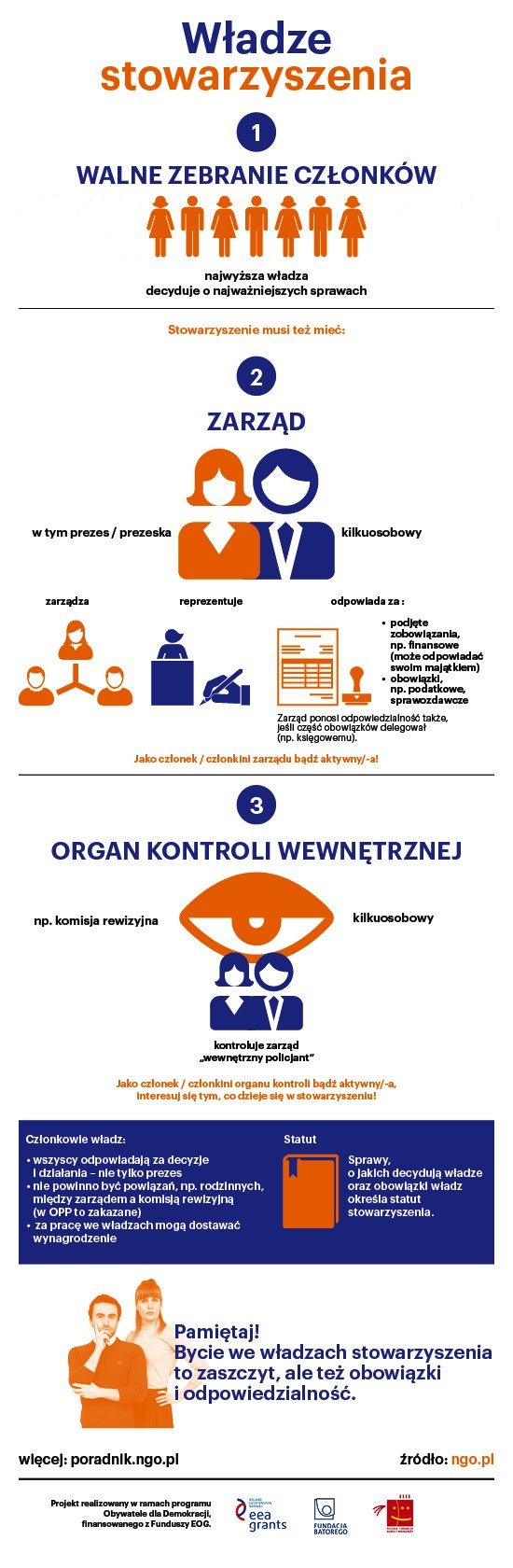 Niewiele osób, podejmując decyzję o zaangażowaniu się w działalność stowarzyszenia, zdaje sobie sprawę z odpowiedzialności, jaka wiąże się z byciem w zarządzie lub w komisji rewizyjnej. Tymczasem zasiadanie we władzach to nie tylko możliwość wpływania na losy organizacji, ale także obowiązki. Warto o tym pamiętać – zobacz infografikę!