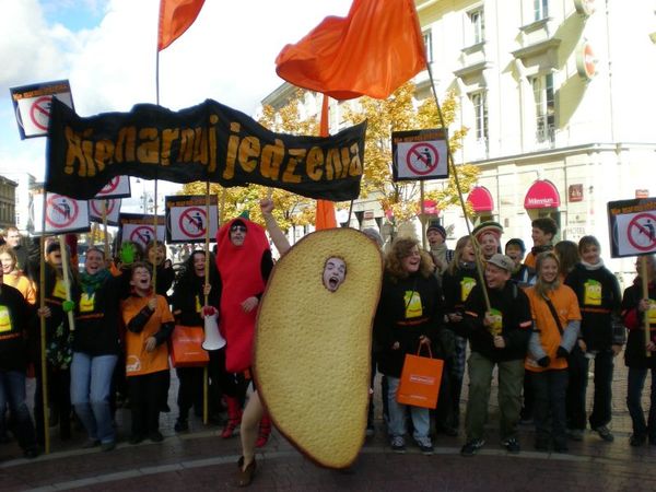 – Nie marnuj jedzenia! – skandowały owoce, warzywa oraz kanapka. Tak naprawdę aktorzy, którzy wcielając się w rolę żywności, zachęcali przechodniów do popierania akcji. Demonstracje odbyły się w Częstochowie, Elblągu, Olsztynie, Rudzie Śląskiej oraz w Warszawie. Wśród strajkujących znajdowali się wolontariusze oraz uczniowie lokalnych szkół. - Kiedyś kanapki, które szykowała mi mama do szkoły, wyrzucałam do kosza – przyznaje Kasia, uczennica warszawskiego gimnazjum. - Nie zawsze miałam na nie ochotę. Wolałam słodką bułkę ze szkolnego sklepiku. Teraz wiem, że wiele moich rówieśników nie ma co jeść, dlatego już nie wyrzucam jedzenia.