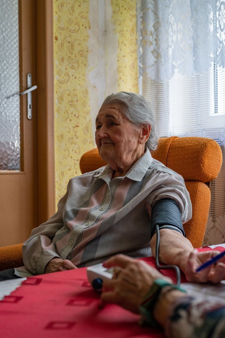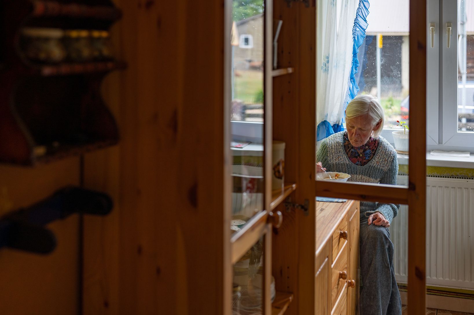 Na zdjęciach przedstawione są osoby starsze, podopieczne Domu Gościnnego w Dzięciołówce (podlaskie), które korzystają ze wsparcia we własnych domach. Fotografie wykonane zostały w 2022 roku, podczas projektu „Skalowanie innowacji społecznej. Opieka domowa na terenach wiejskich”, realizowanego przez OWOP, Fundację Hospicjum Proroka Eliasza i Stowarzyszanie CAL z Warszawy. Fot. mikolajgorecki.com