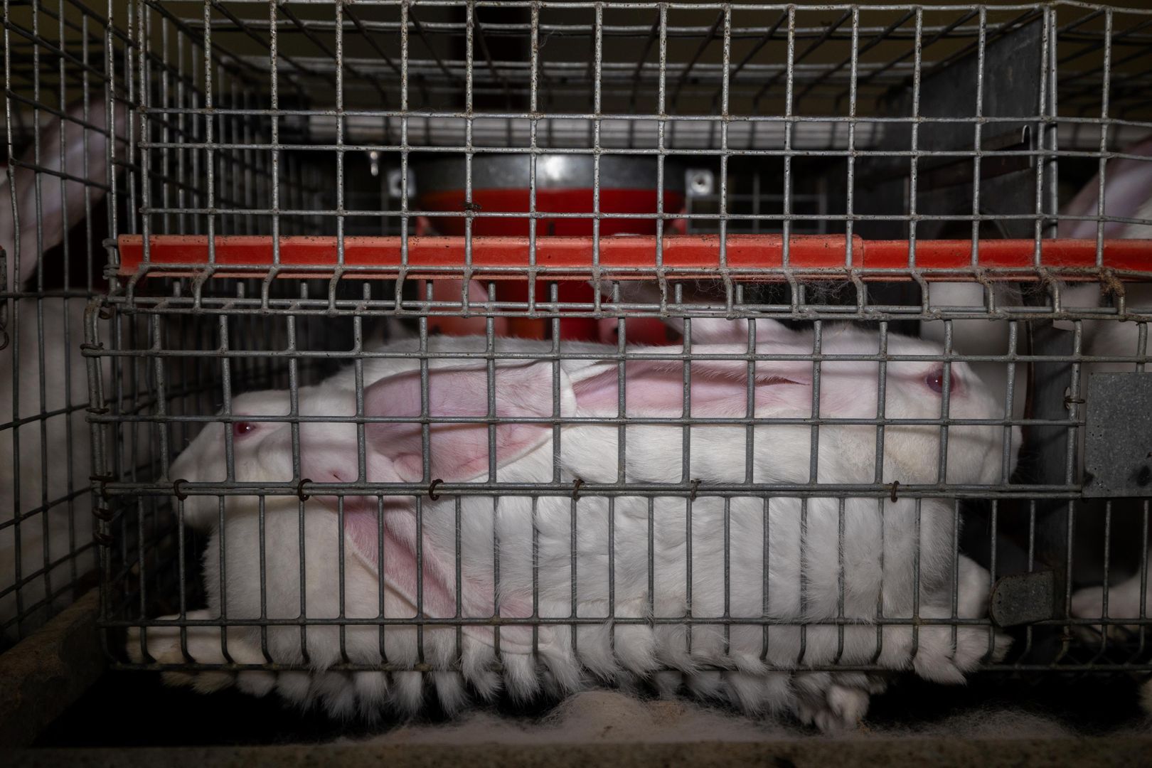 Niepokojące nagrania, nakręcone na fermach królików hodowanych na mięso w Polsce i we Włoszech, ukazują króliki w klatkach tak małych, że nie mogą się w nich rozciągnąć, podskoczyć czy wyprostować. Zwierzęta zamknięte w oddzielnych klatkach, mimo że są zwierzętami społecznymi. Widać króliki rozpaczliwie gryzące metalowe druty z frustracji czy zamknięte w klatkach obok innych martwych z obgryzionymi uszami lub niezdolne do podniesienia głowy prosto do góry. Niektóre króliki miały brak futra na większości ciała, co prawdopodobnie wskazuje na obecność pasożytów lub infekcji.