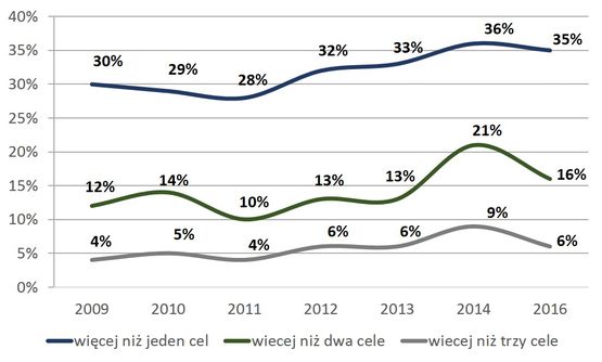 Do 2014 roku przyrastał też udział tych, którzy w ciągu roku wspierali więcej niż dwa oraz więcej niż trzy przedsięwzięcia, ale w 2016 trend wzrostowy się zatrzymał. Jednak mimo wszystko można uznać, że polscy darczyńcy powoli pogłębiają swoje zaangażowanie w filantropię.