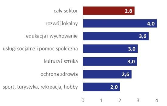 Charakterystyczną cechą organizacji edukacyjnych jest także ich wielobranżowość. Przeciętna polska organizacja działa w niemal trzech (średnia 2,8) obszarach tematycznych: jednym głównym i dwóch dodatkowych. Fundacje i stowarzyszenia zajmujące się edukacją i wychowaniem działają tymczasem w niemal czterech (średnia 3,6) dziedzinach. Większą wielobranżowością cechują się jedynie organizacje zajmujące się rozwojem lokalnym.