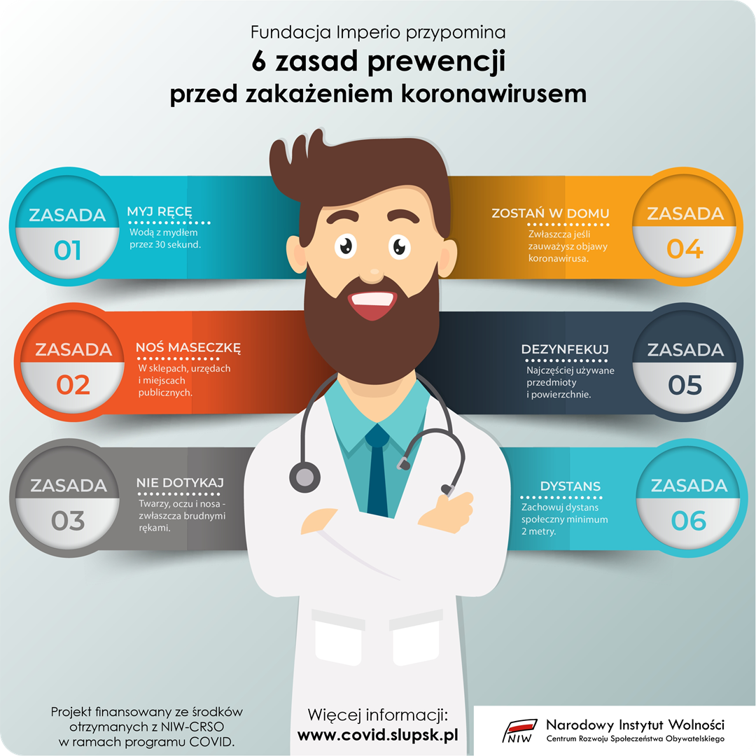Fundacja Imperio przygotowała materiały edukacyjne dla uczniów i nauczycieli. Treści z zakresu przeciwdziałania rozprzestrzenianiu się epidemii koronawirusa są dostępne na stronie www.covid.slupsk.pl .