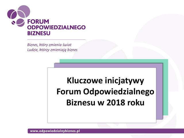 – 2018 to ważny rok dla Polski. Rocznica odzyskania przez Polskę niepodległości zachęca do spojrzenia na biznes w kontekście budowania wspólnego dobra i rozwoju kraju, a także zastanowienia, jak działać dalej mierząc się z wyzwaniami teraźniejszości i przyszłości. Kompetencją Forum Odpowiedzialnego Biznesu są przede wszystkim działania edukacyjne na rzecz zrównoważonego rozwoju i pozytywnego wpływu firm na społeczeństwo i środowisko. Nasz wkład w rozwój odpowiedzialnego biznesu w Polsce to budowanie w tym zakresie partnerstw sektorowych i międzysektorowych z partnerami Forum oraz wszystkimi zainteresowanymi organizacjami – mówi Dominika Bettman, prezeska Forum Odpowiedzialnego Biznesu.