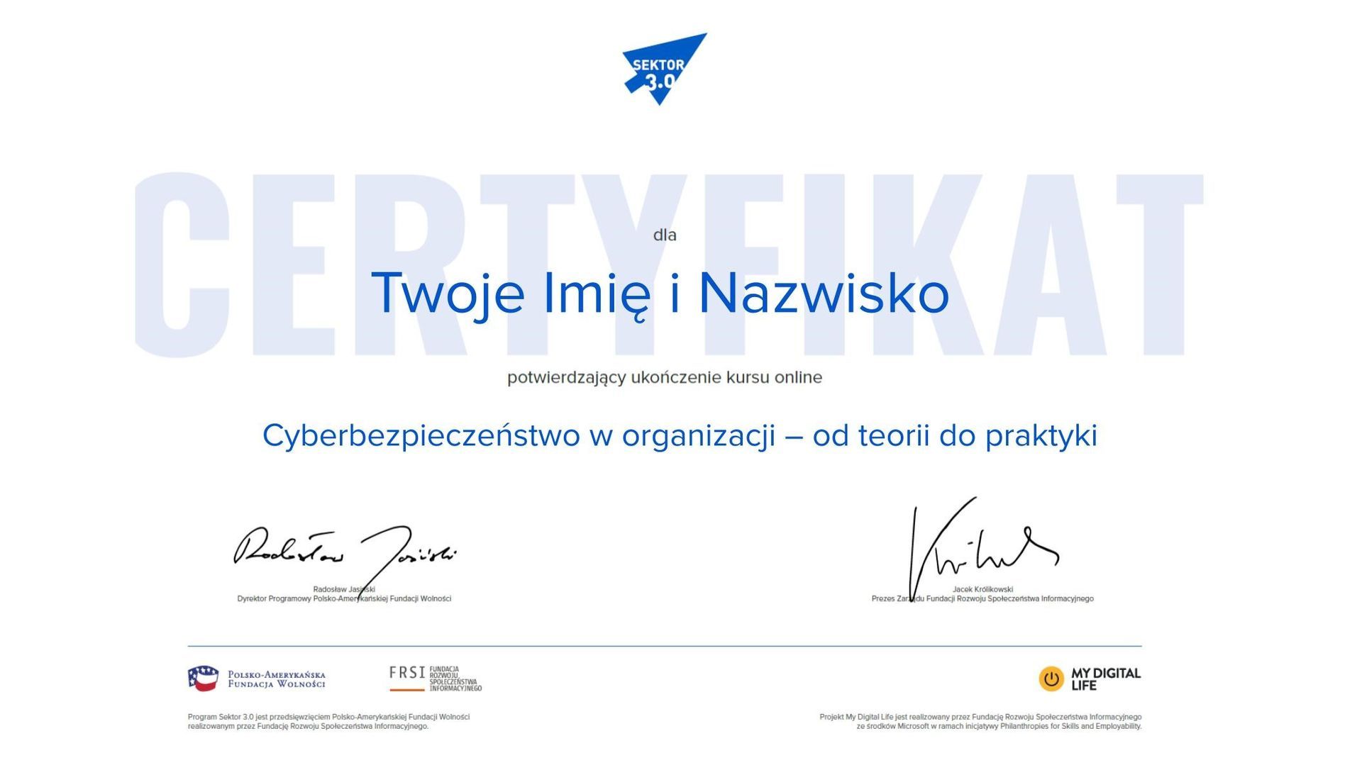 Po zakończeniu każdego kursu otrzymasz certyfikat: