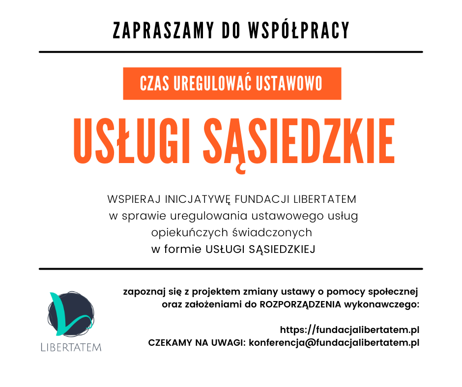 Fundacja Libertatem opracowała projekt ustawy zmieniającej przepisy ustawy o pomocy społecznej tak, by uregulować ustawowo usługi opiekuńcze świadczone w formie usług sąsiedzkich.