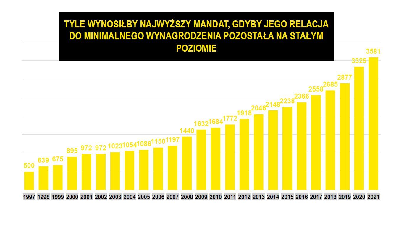 Dziś, gdyby zachować proporcje z 1995 r. (71% przeciętnego wynagrodzenia) to najwyższymandat powinien wynosić ponad 4 tysiące złotych