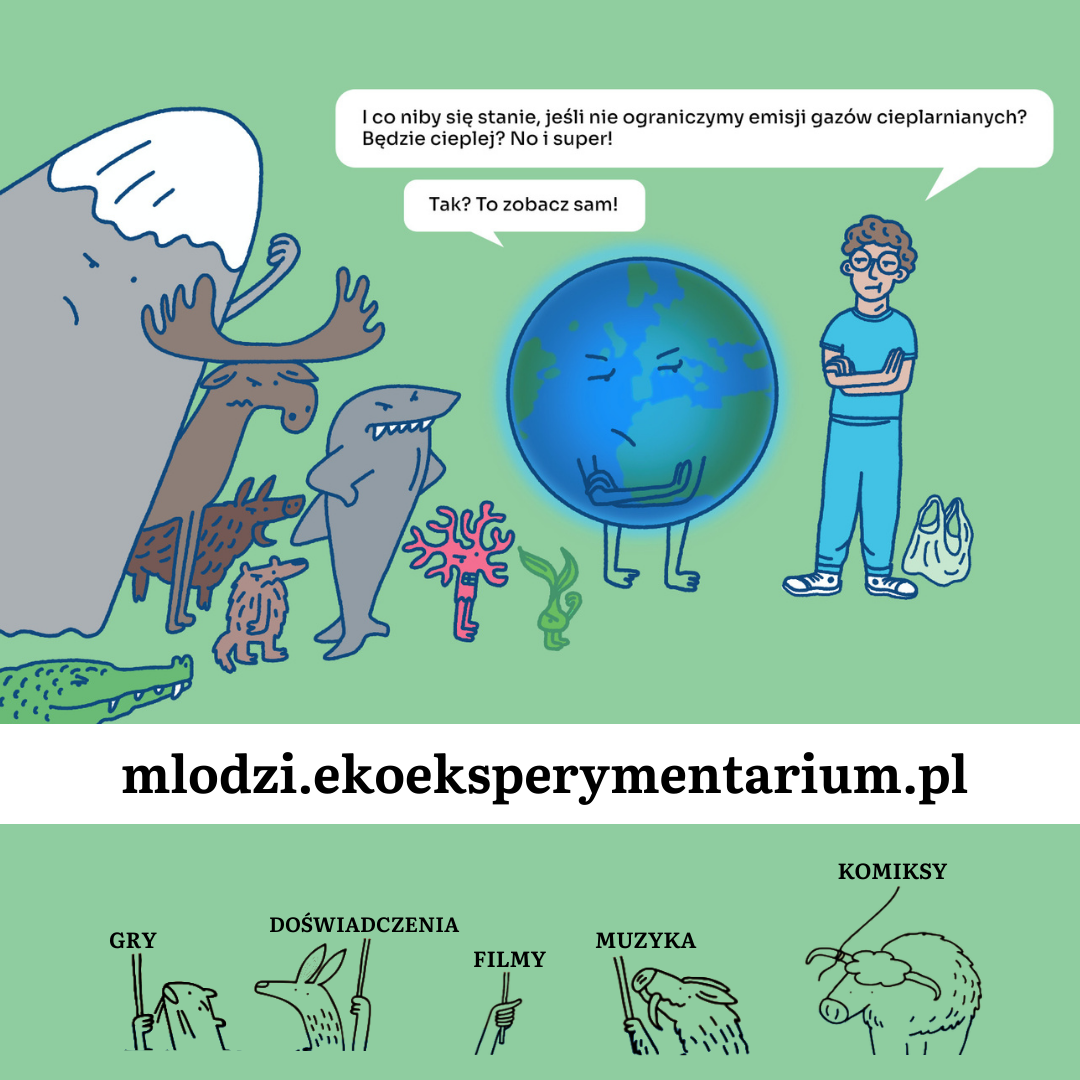 Ile CO2 wytwarzamy codziennie, gdy oglądamy filmy z kotkami, a ile, gdy dzwonimy do znajomych? Co się stanie, jeśli temperatura na Ziemi wzrośnie o 4 stopnie Celsjusza, a ile milionów ludzi trzeba będzie przesiedlić, gdy średnia temperatura wzrośnie o 2 stopnie? Odpowiedzi na te i inne pytania znajdziecie na mlodzi.ekoeksperymentarium.pl – nowym portalu edukacyjnym, w którym eksperci uczą o klimacie za pomocą filmów, memów, gier i muzyki!