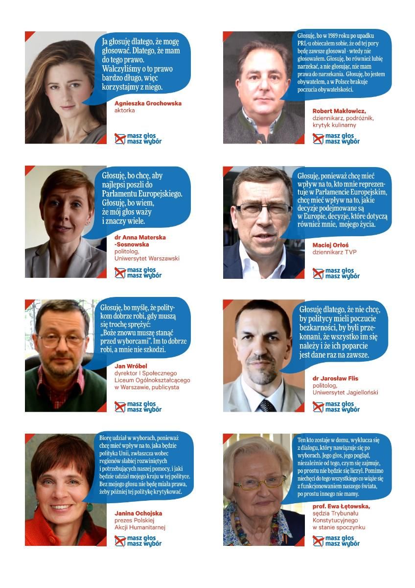 Pod hasłem „Głosuj i wybierz posłankę lub posła, którzy myślą tak jak Ty” 24 kwietnia ruszyła społeczna kampania profrekwencyjna do wyborów do Parlamentu Europejskiego. Jej pomysłodawcą i organizatorem jest koalicja organizacji pozarządowych Masz Głos, Masz Wybór. Cel kampanii to informowanie o procedurach i zachęcanie Polaków do licznego i świadomego udziału w eurowyborach 25 maja 2014 roku. Więcej na www.glosuj.org.pl