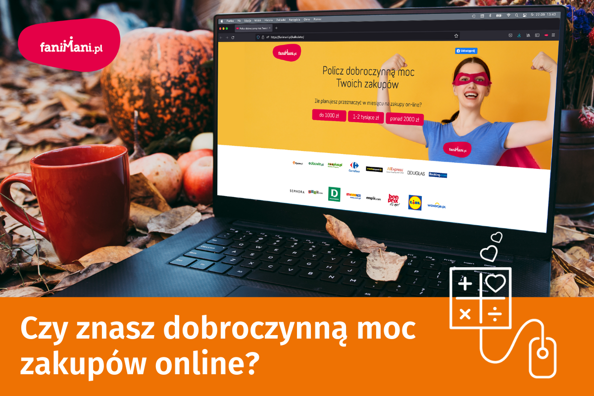 Jesień i końcówka roku to zawsze czas najbardziej intensywnych zakupów online. Czy wiesz, jakie wsparcie może otrzymać Twoja organizacja przy okazji codziennych zakupów w internecie? Teraz możesz je policzyć razem z kalkulatorem FaniMani!