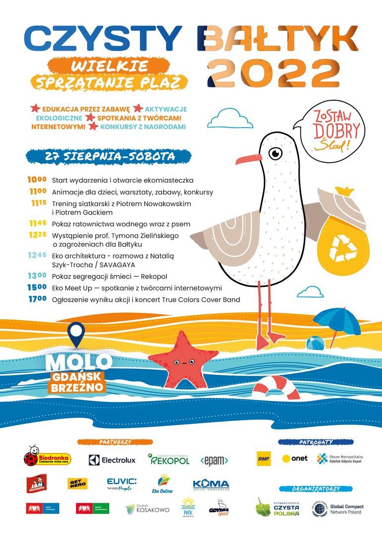 W najbliższą sobotę, 27 sierpnia odbędzie się druga edycja akcji Czysty Bałtyk. Stowarzyszenie Czysta Polska wraz z wolontariuszami posprzątają plaże oraz pas nadbrzeżnych wydm od Gdańska po Puck. Centrum wydarzenia, do którego warto zaglądać przez cały dzień, będzie miasteczko ekologiczne zlokalizowane przy molo w Gdańsku Brzeźnie.