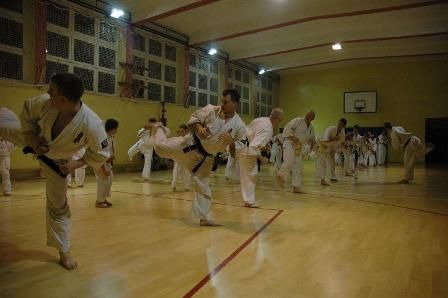 Kilkudziesięciu adeptów karate zgromadziło się podczas Świątecznego Trening Karate Kyokushin i Spotkania Opłatkowego, które zostały zorganizowane w jubileusz 25-lecia Dąbrowskiego Klubu Karate. Prowadzony przez sensei Artura Srokę trening zakończył się symbolicznym łamaniem opłatka.
