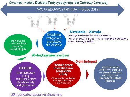 Dyskusja nad budżetem partycypacyjnym trwała od kilku miesięcy. Regularnie spotykał się zespół, składający się z przedstawicieli Urzędu Miejskiego, radnych, organizacji pozarządowych i mieszkańców, któremu udało się wypracować model funkcjonowania najoptymalniej dopasowany do dąbrowskich warunków.