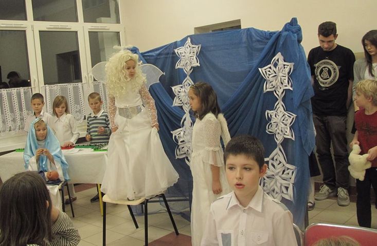 Dzieci przygotowały jasełka, grały na cymbałkach. Wszyscy zgromadzeni przy świątecznym stole wspólnie śpiewali kolędy, a także łamiąc się opłatkiem składali sobie życzenia dobrych i radosnych Świąt oraz pomyślności na nadchodzący Nowy Rok.