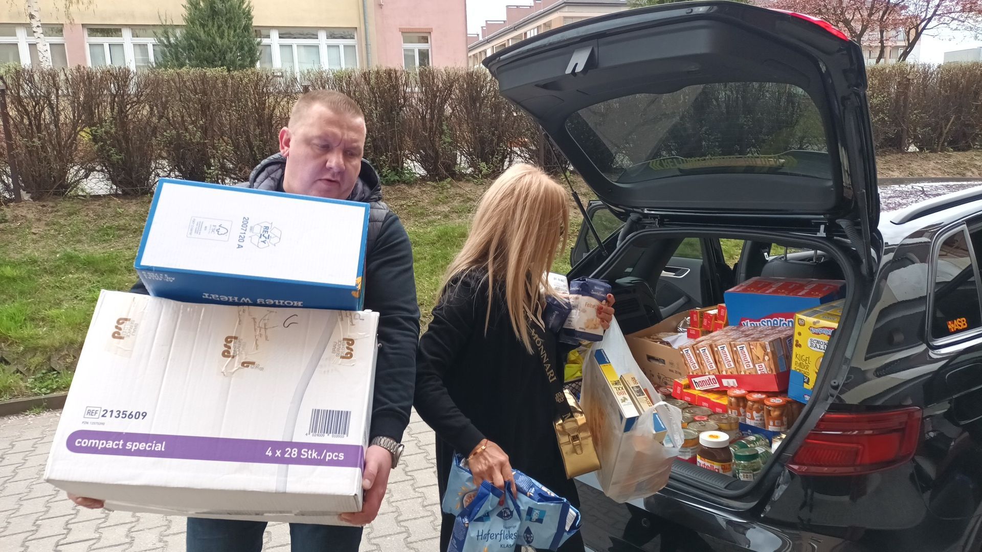 Dzisiaj wolontariusze z Niemiec przywieźli mleko pasteryzowane, a także trwałą żywność.