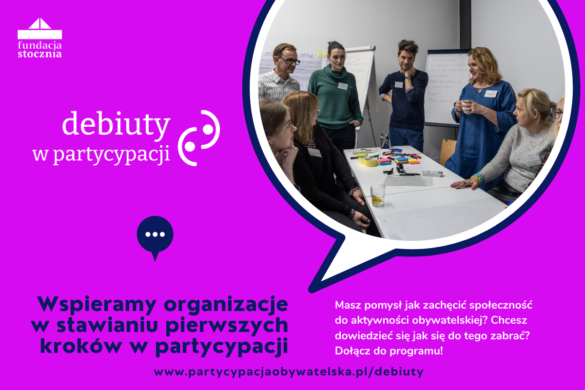 „Debiuty w partycypacji” to program wspierający działające lokalnie organizacje, które jeszcze nie mają doświadczenia we włączaniu społeczności do decydowania o wspólnych sprawach.