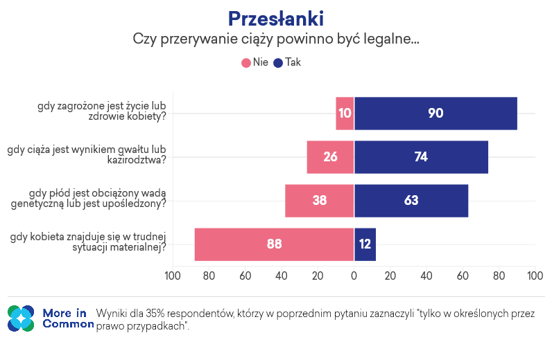 – Decyzja o zachowaniu lub przerwaniu ciąży w powszechnej opinii jest osobistym wyborem kobiety, którego dokonuje w zgodzie ze swoim sumieniem – w optymalnym scenariuszu w porozumieniu z partnerem i po zasięgnięciu opinii lekarza – dodaje Adam Traczyk, dyrektor More in Common Polska. – Jednocześnie, większość badanych traktuje decyzję o przerwaniu ciąży w kategoriach tragedii i uważa, że jest ona podejmowana w sytuacji najwyższej konieczności. Gotowość do pozostawienia wyboru kobiecie świadczy w tym kontekście zarówno o zaufaniu, jak i uznawaniu ich podmiotowości.