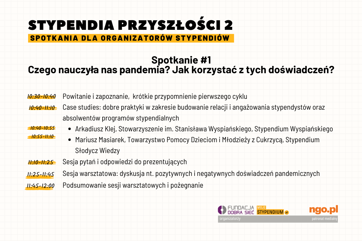 Dla organizatorów stypendialnych: spotkanie "Stypendia przyszłości 2: Czego nauczyła nas pandemia?" [patronat ngo.pl]