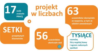 W projekcie pn.: „Bilet powrotny. Aktywizacja osób po 50 roku życia” wzięły udział 63 osoby długotrwale bezrobotne. Mimo wielu barier i trudności, aż 17 z nich może cieszyć się z podjęcia zatrudnienia.