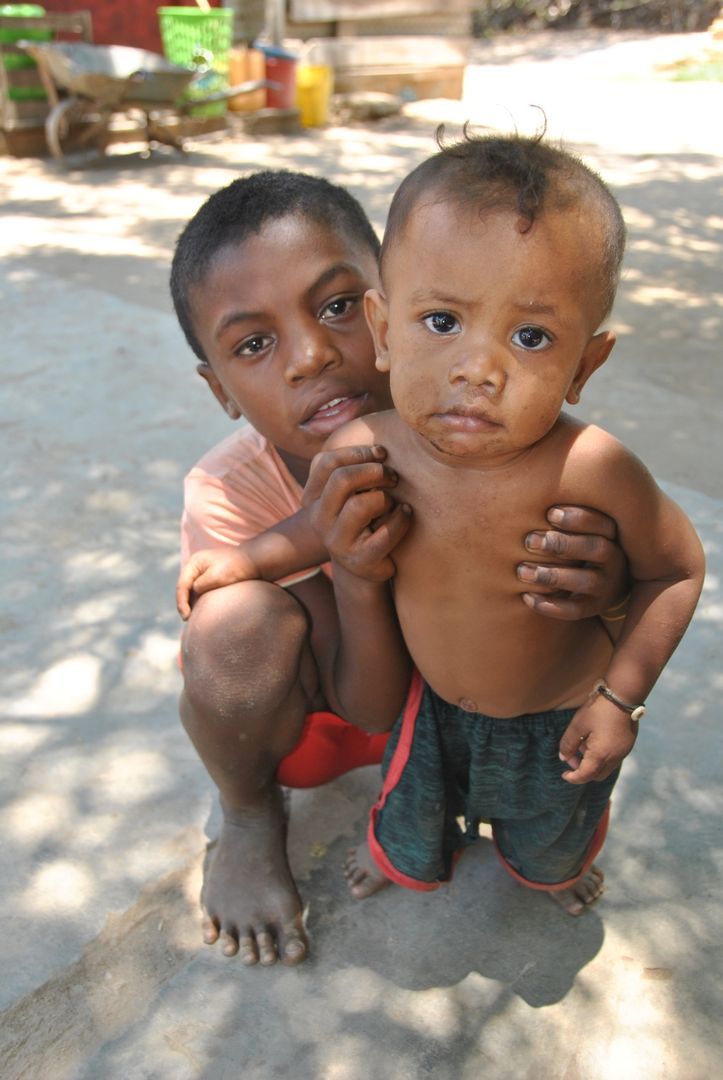 Nata i jego dwóch starszych braci przyszli pod stołówkę w Mampikony, gdzie codziennie karmimy 500 dzieci. Byli brudni, zmęczeni i głodni. Ich tata nie żyje. Nie mają nic: ani pola, ani domu. Często śpią pod drzewem mangowca w okolicy pola, na którym mamie akurat udało się znaleźć pracę. Dwoje starszych chłopców pracuje z mamą. Usłyszeli, że u nas dzieci dostają jeść.