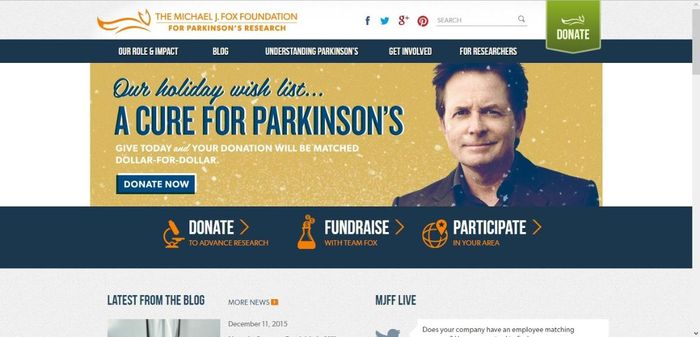 W prowadzeniu swojej fundacji Michael J. Fox, wykorzystuje status gwiazdy, który może zwrócić uwagę większej części społeczeństwa. Na stronie głównej widzimy jego zdjęcie oraz hasło zachęcające do wspierania jego inicjatywy. Link ,,Zrozumieć Parkinsona” daje możliwość poznania choroby ludziom, którzy nigdy nie mieli z nią styczności. Strona od razu pozwala zaangażować się darczyńcom, a dzięki przyciskom ,,Dotacje”, ,,Fundraise” i ,,Weź Udział” możemy kilkoma kliknięciami myszy wspomóc organizację.