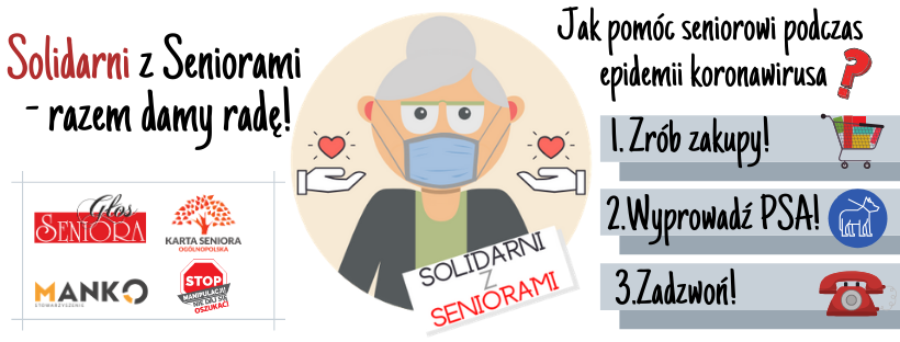W trosce o zdrowie i bezpieczeństwo Seniorów, jako Stowarzyszenie MANKO – Głos Seniora podjęliśmy odpowiednie kroki i rozpoczęliśmy działania w ramach naszej nowej akcji „Solidarni z Seniorami – razem damy radę!”. Skuteczne działanie na rzecz Seniorów może rozpocząć każdy i na początku skupić na prostych czynnościach, jak np. zrobienie zakupów, wyprowadzenie psa czy rozmowie telefonicznej.