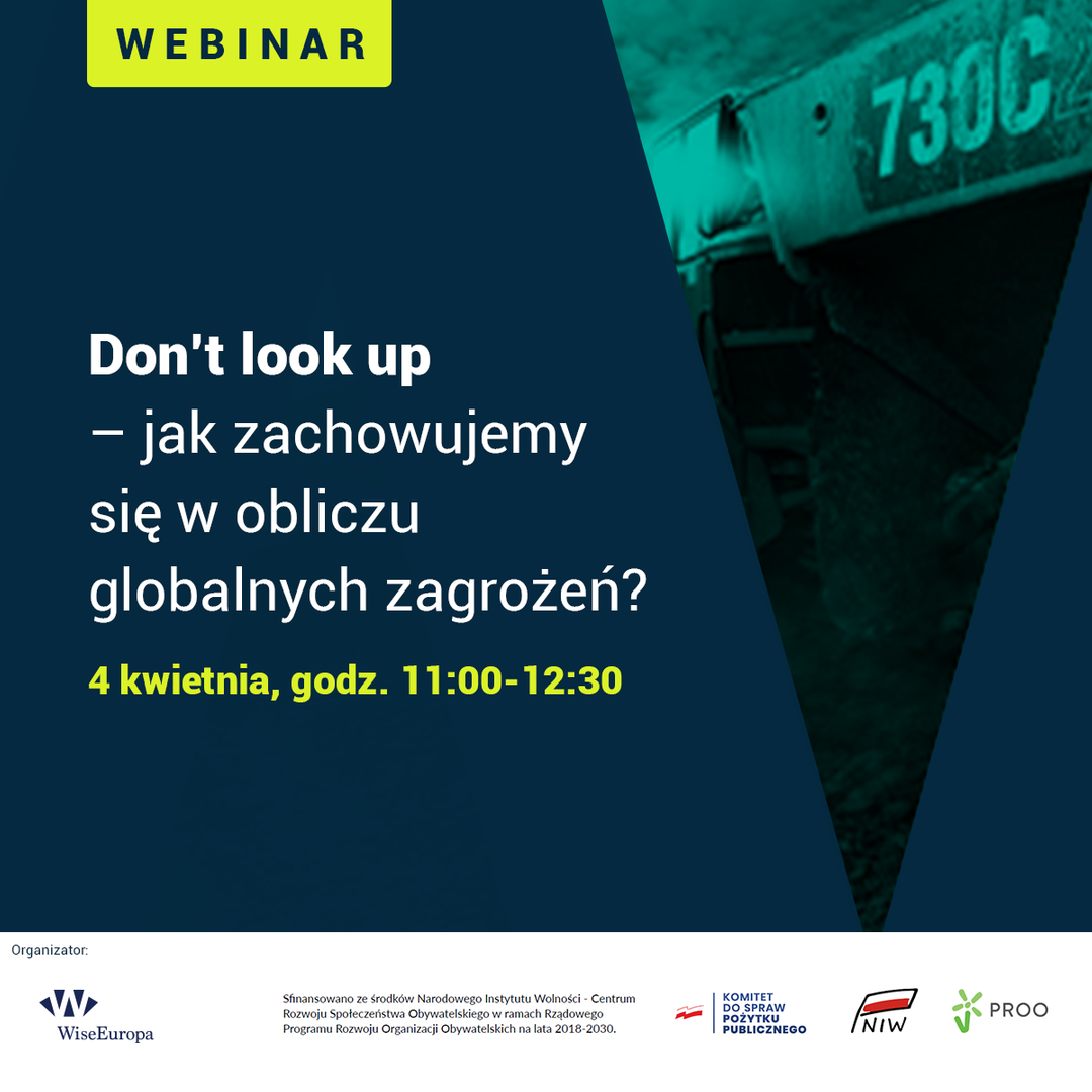 Kometa pędząca w kierunku Ziemi z ogromną prędkością to metafora katastrofy, która zakończy naszą cywilizację. Wysoce zakaźny wirus, wojna światowa, zmiany klimatu – możliwości ostatecznej przyczyny końca jest kilka. Jak odnajdujemy się w tej sytuacji jako globalna społeczność? Czy potrafimy zjednoczyć Cię i wspólnie znaleźć rozwiązania? – komentarz dr Justyny Orłowskiej, starszej analityczki WiseEuropa.