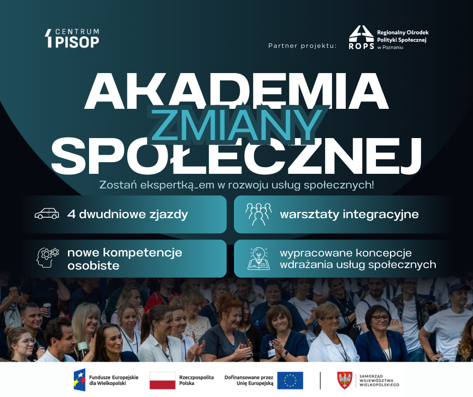 Masz w sobie potrzebę działania na rzecz innych? Chcesz rozwijać swoje kompetencje, lepiej komunikować się z ludźmi i zdobyć ekspercką wiedzę z zakresu rozwoju usług społecznych? Dołącz do Akademii Zmiany Społecznej – programu stworzonego z myślą o osobach, które chcą realnie wpływać na otaczającą rzeczywistość. Trwa rekrutacja!