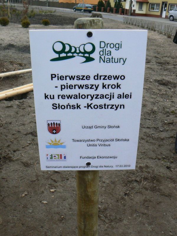 Seminarium, objęte patronatem pani Wojewody Lubuskiego Heleny Hatki, odbyło się w Słońsku w dniu 17 marca 2010 r. i dotyczyło głównie problematyki ochrony oraz odtwarzania zadrzewień przydrożnych na terenie Województwa Lubuskiego. Co warto jednak podkreślić, spotkanie stanowiło jednocześnie inaugurację ogólnopolskiego programu ochrony alej „Drogi dla Natury”, który swym zasięgiem obejmuje również obszary Województwa Pomorskiego, Warmińsko-Mazurskiego, Małopolskiego, Wielkopolskiego oraz Dolnośląskiego.
