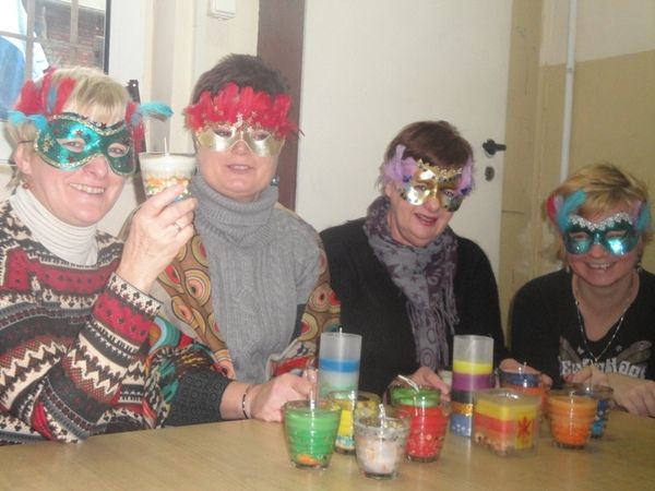 – Spotkania odbywają się w środy i piątki w siedzibie świetlicy środowiskowej „Grodzisko” – mówi Elżbieta Leśniewska. – Zazwyczaj w planie dnia mamy wykład, a potem luźniejsze zajęcia lub na odwrót. Pewnego razu panie grały w gry planszowe, innym razem z kolei wykonywały karnawałowe maski. Podczas warsztatów z psycholog uczestniczyły w arteterapii: malowały z wykorzystaniem m.in. techniki pasteli. Poprzez analizę tej twórczości dowiedziały się więcej o sobie, o swoim potencjale i możliwościach.