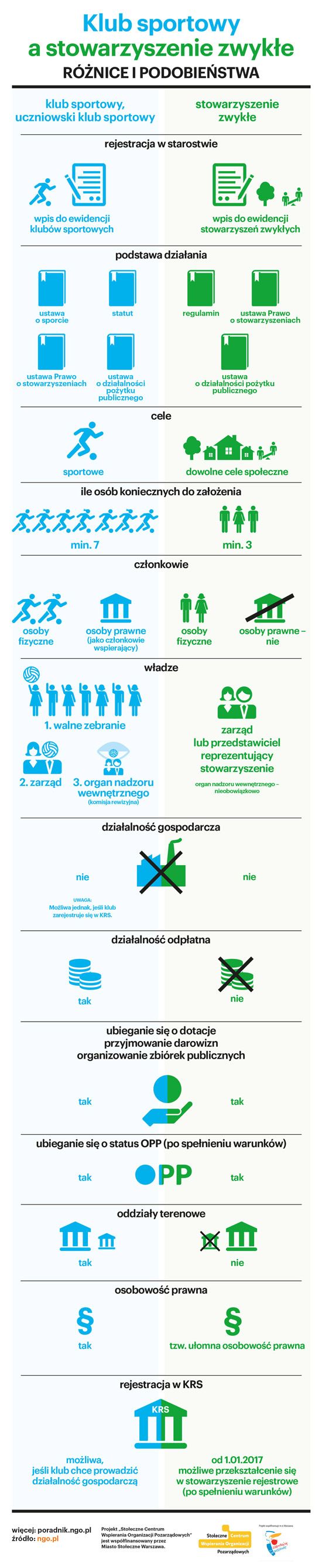 Starostwa prowadzą dwie różne ewidencje: klubów sportowych i stowarzyszeń zwykłych. Różne są też prawne zasady działania klubów sportowych i stowarzyszeń zwykłych. Sprawdź, w czym są do siebie podobne, a czym się różnią. Różnic jest dużo – obejrzyj naszą infografikę!