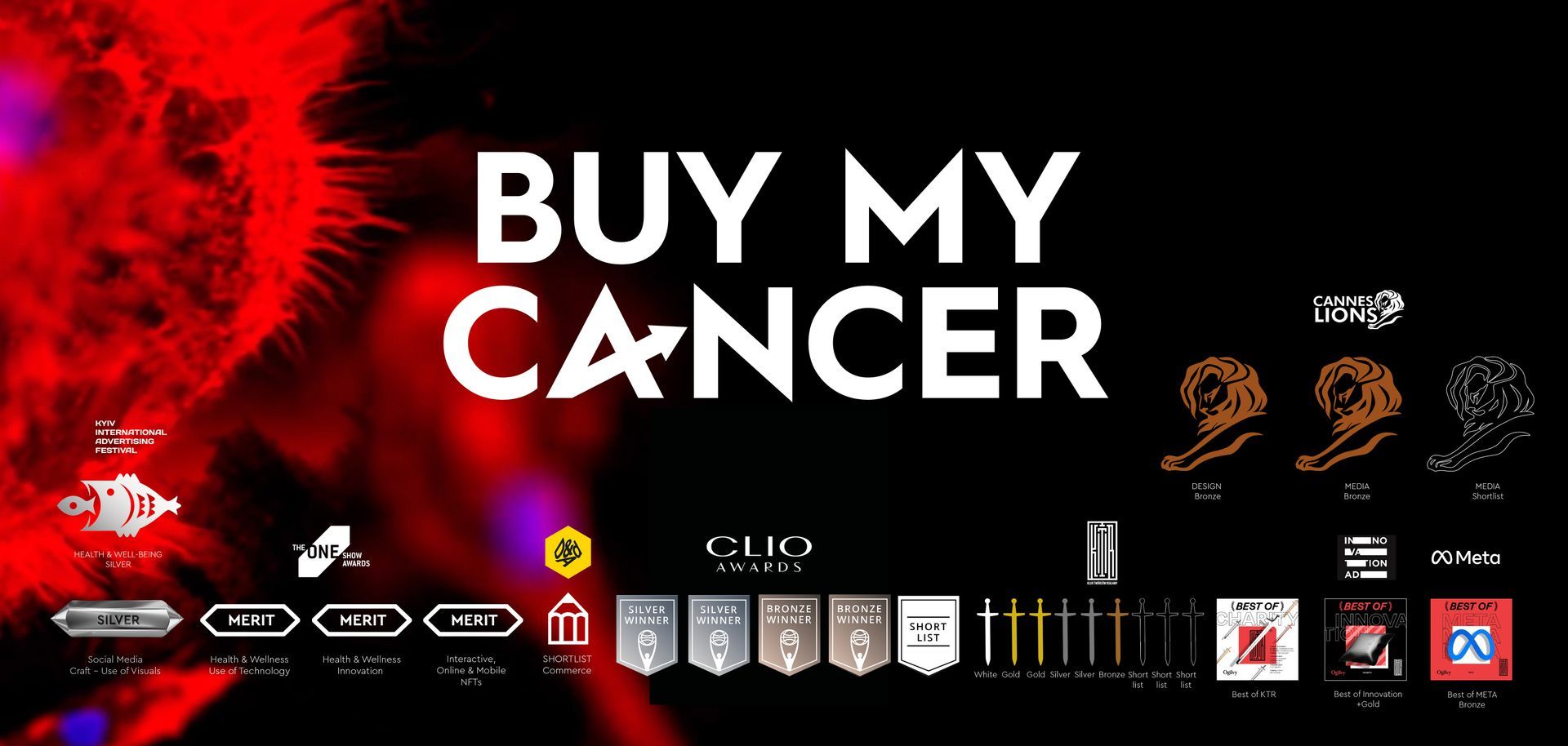 Warto dodać, że nie jest to pierwsza nagroda dla „Buy My Cancer”. Łącznie projekt został wyróżniony na 10 międzynarodowych festiwalach: One Show, KTR, Innovation, D&AD, Clio Awards, Clio Health Awards, META, The Drum, Kyiv International Advertising Festival i Cannes Lions.
