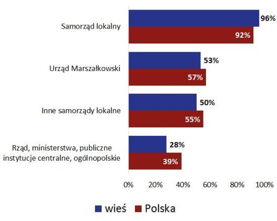 O lokalnym nastawieniu organizacji z terenów wiejskich świadczy także siatka ich relacji z partnerami. Jeśli spojrzymy na kontakty z administracją, zobaczymy, że wiejskie organizacje częściej niż stowarzyszenia i fundacje w skali całego kraju utrzymują relacje z samorządem lokalnym (urzędem miasta lub gminy, starostwem powiatowym). Rzadziej natomiast kontaktują się z urzędami marszałkowskimi, innymi samorządami lokalnymi, czy instytucjami centralnymi.