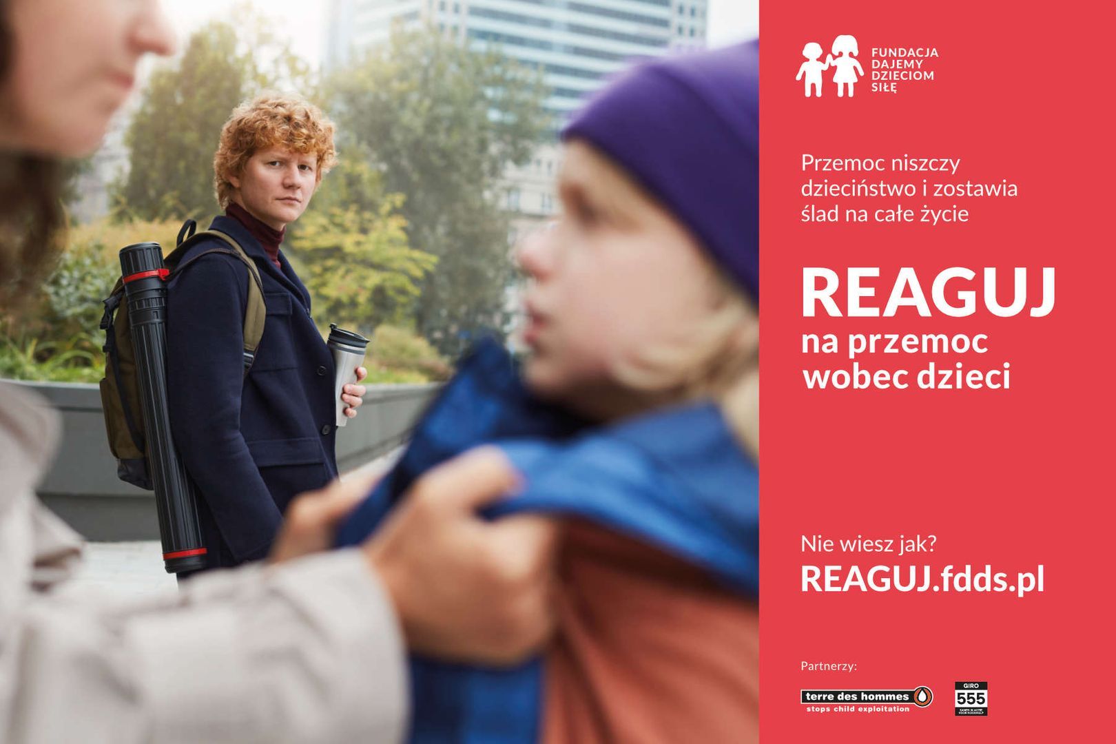 Fundacja Dajemy Dzieciom Siłę rozpoczęła kampanię „REAGUJ na przemoc wobec dzieci”. Celem kampanii jest zwiększenie społecznej gotowości do reagowania w sytuacjach, gdy podejrzewają, albo widzą, że dziecko doświadcza przemocy. Na stronie kampanii REAGUJ.fdds.pl FDDS zebrała kluczowe informacje na temat ścieżek i sposobów reagowania, wskazała miejsca i formy pomocy oraz udostępniła niezbędne dokumenty i wzory pism. Do pobrania są też materiały graficzne (plakaty, ulotka), które można wydrukować i powiesić na przykład w swoim bloku lub na swoim osiedlu.