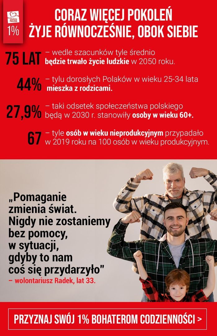 Szacuje się, że w 2030 roku blisko 30% naszego społeczeństwa będą stanowić seniorzy. Jesteśmy jednym z najszybciej starzejących się krajów w Europie. Młodzi coraz później się usamodzielniają, a średnia długość życia wzrasta. W efekcie coraz więcej pokoleń żyje równocześnie, obok sobie. 29 kwietnia świętujemy Europejski Dzień Solidarności Międzypokoleniowej. O tym, dlaczego budowanie tej postawy społecznej jest ważne i jak właściwie powinniśmy ją rozumieć, opowiada od kilku dni Szlachetna Paczka w ramach inicjatywy „Tydzień Dla Pokoleń”.