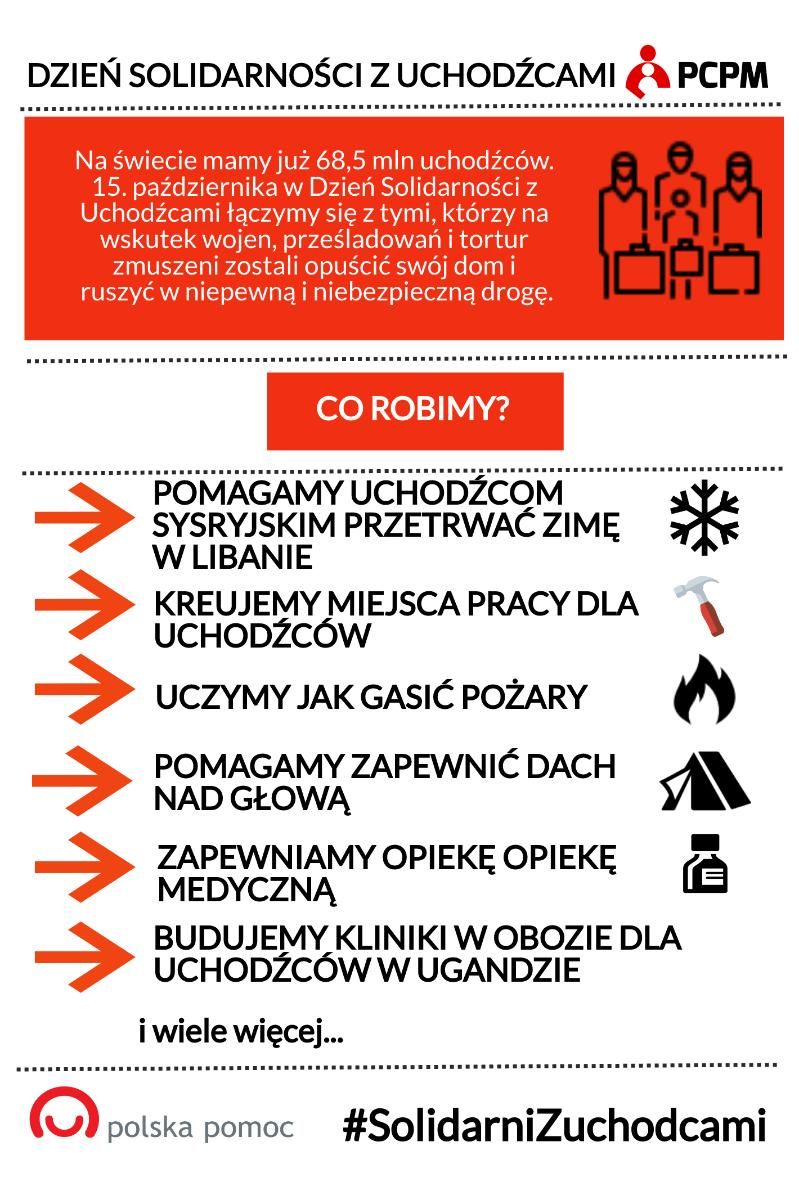 Choć liczby podawane w raportach przerażają, a zapotrzebowanie na pomoc wciąż rośnie, nie poddajemy się. Jesteśmy solidarni z tymi, którzy musieli opuścić swoje domy licząc na to, że na gdzieś na świecie znajdą bezpieczeństwo, spokój i lepszą przyszłość dla swoich dzieci. Dlatego naprawiamy i budujemy namioty dla uchodźców w Arsalu w Libanie, prowadzimy szkolenia strażackie, wpieramy klinikę, prowadzimy centrum edukacyjne dla uchodźców syryjskich. Stawiamy domy modułowe w obozie dla uchodźców w Ugandzie, które będą służyły jako kliniki tymczasowe i wysyłamy medyków, aby na miejscu pomagali ratować ludzkie życia. Bo dla nas liczy się każde życie. Pomóż nam je ratować. Bądźmy solidarni z uchodźcami.