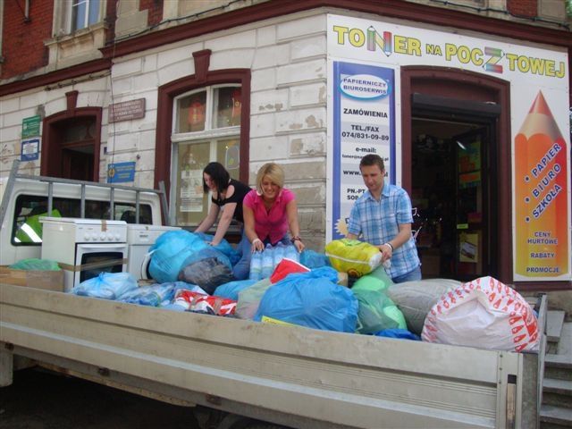 Dzierżoniowskie Centrum Wolontariatu przy ZHP zakończyło zbiórkę darów dla osób dotkniętych klęską powodzi. Po dwóch transportach do Sandomierza wysłaliśmy jeszcze przedwczoraj busa z darami do Wrocławia i wczoraj ciężarówkę z darami dla miasta i okolic Kędzierzyna Koźla. W akcję pomocy powodzianom włączył się Burmistrz Bielawy, który sfinansował transport darów do Kędzierzyna Koźla.