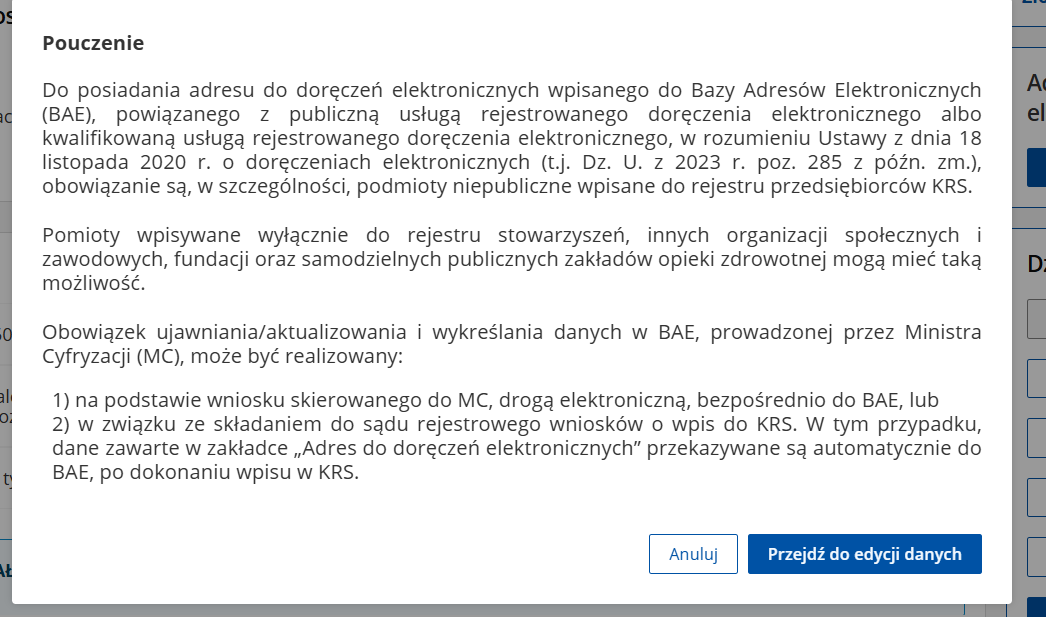 Obowiązek posiadania adresu do doręczeń elektronicznych dotyczy tylko organizacji pozarządowych z działalnością gospodarczą - czyli takich, które widnieją w rejestrze przedsiębiorców KRS.