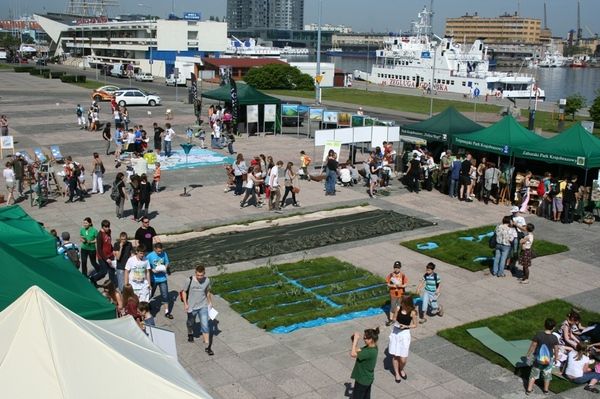 Ozdobą akcji były wykreowane przez artystów pomorskie krajobrazy z recyklingu. Z soczystej trawy, surowców naturalnych i wtórnych zaaranżowaliśmy Żuławy Wiślane, wzgórza morenowe, wijącą się Słupię, krajobrazy nadmorskie i kaszubskie. Na wielu stoiskach w rozstawionych wokół namiotach wszyscy mogli miło i twórczo spędzić czas. Zaprezentowano Klif Orłowski - świat na styku wody i lądu a na jego plastycznej wizualizacji tworzono artystyczne formy świata ożywionego.