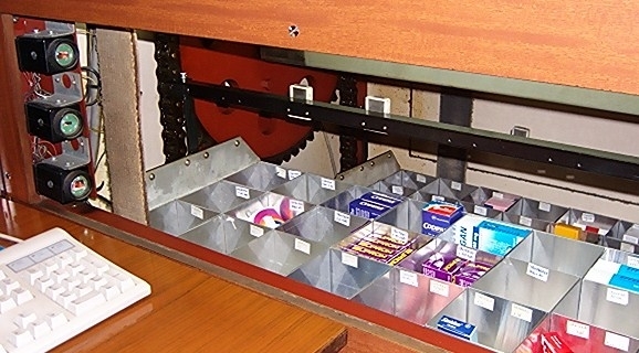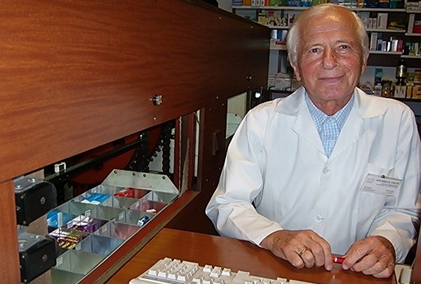 Mając na uwadze trudne warunki pracy farmaceutów, latami stojących po kilka godzin przy okienku i narażonych na liczne choroby zawodowe: żylaki, bóle kręgosłupa, zwyrodnienia stawów, wprowadził rewolucyjny, jak na tamte czasy, wynalazek: sterowane komputerowo podajniki leków. Farmaceuta siedząc przed komputerem, wpisywał tylko odpowiednią nazwę medykamentu i po zatwierdzeniu nazwy i ceny kliknięciem na klawiaturze, szufladka z żądanym lekiem sama do niego podjeżdżała. Lekarstwo było więc (dosłownie!) na wyciągnięcie ręki.